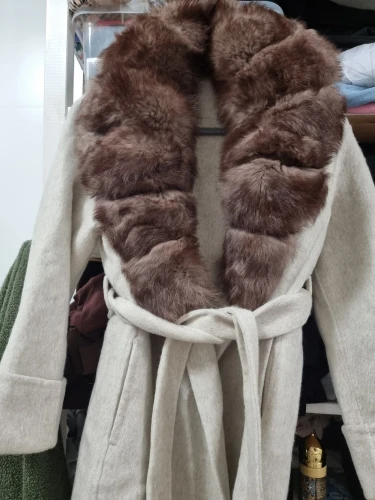 Women's Cashmere-Wool-Blend Fox Fur Collared Coat