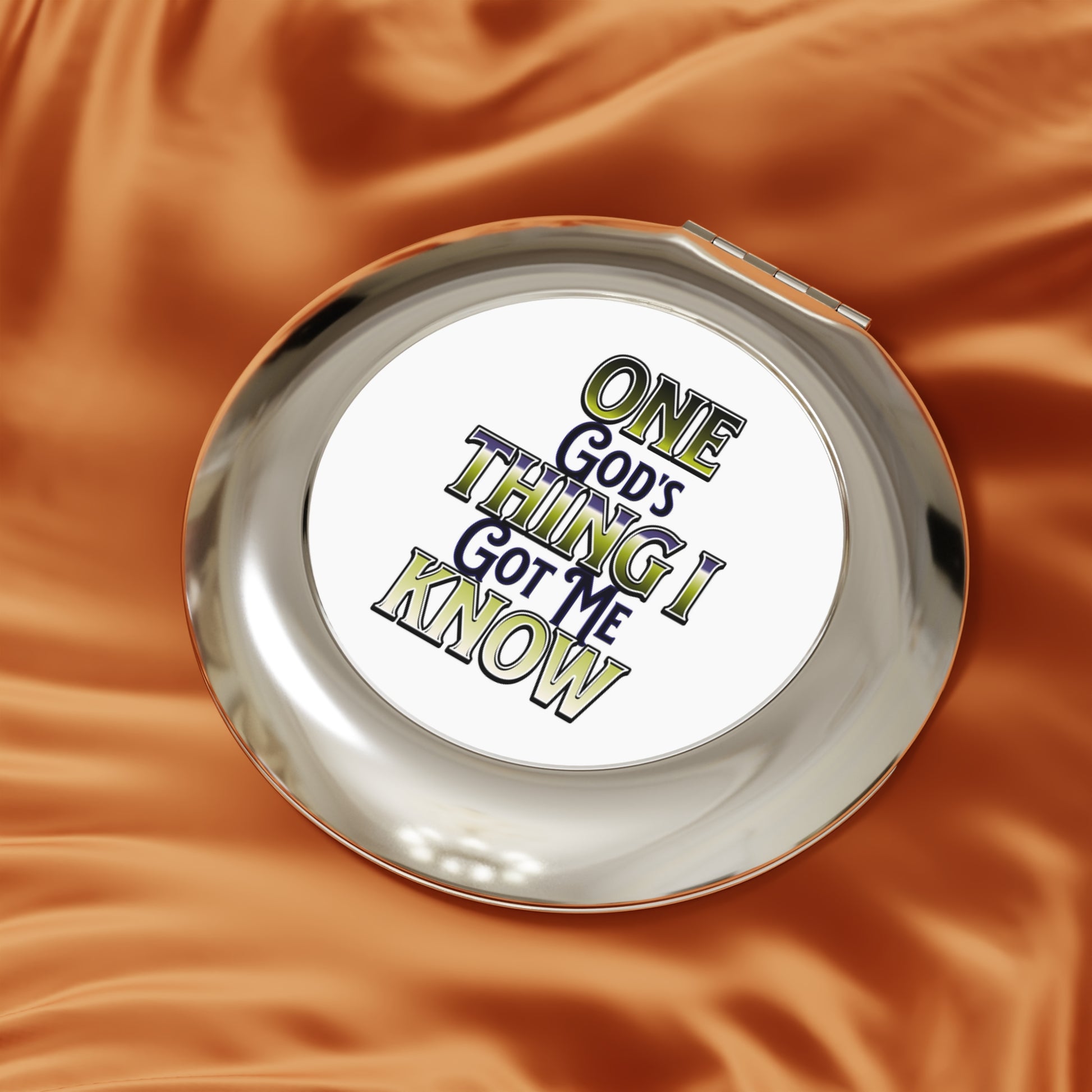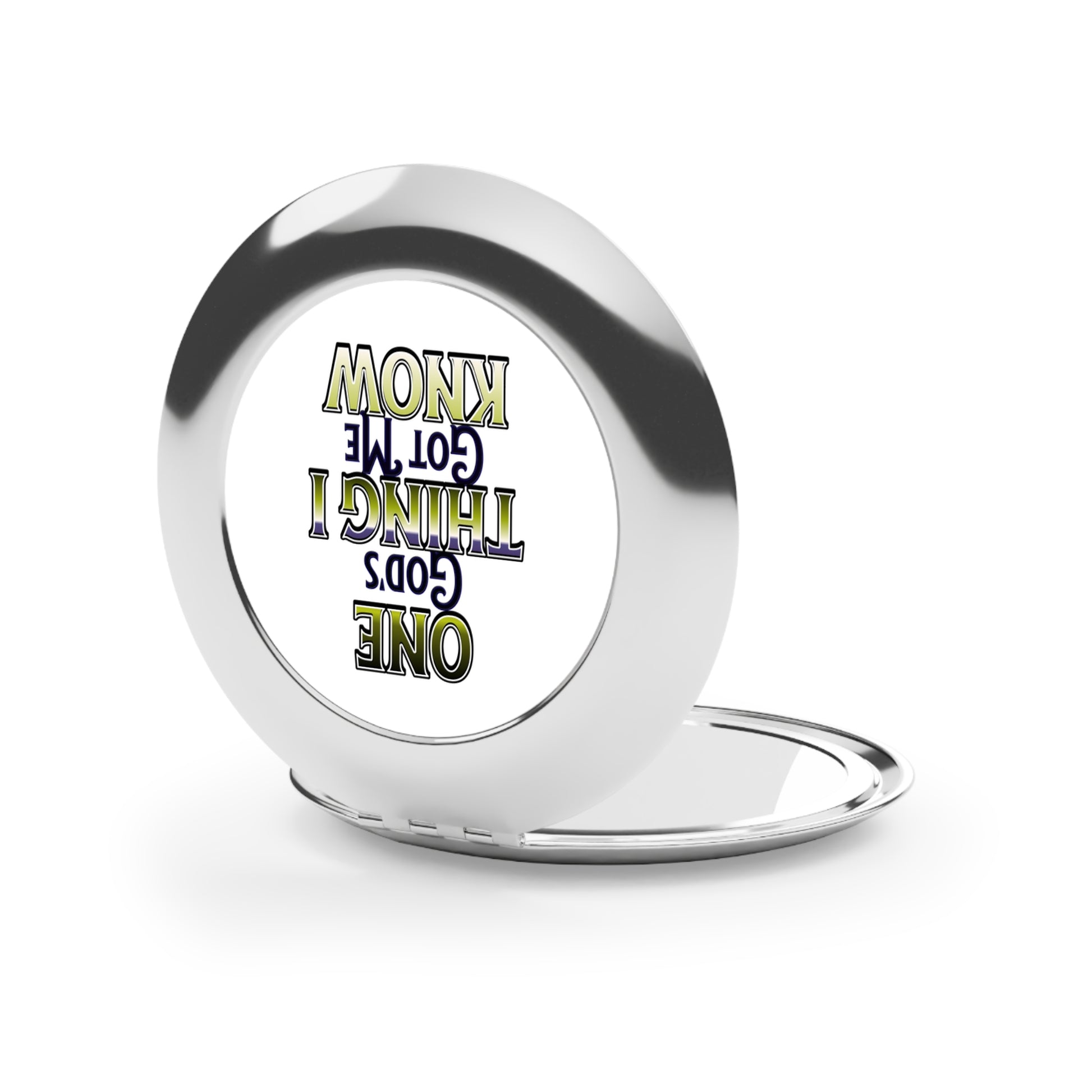 Enhance your everyday look with the God's Got Me Compact Travel Mirror. This compact mirror is perfect for on-the-go touch-ups and features a sleek design with a sturdy construction. Keep your faith close and your makeup flawless with this must-have accessory.