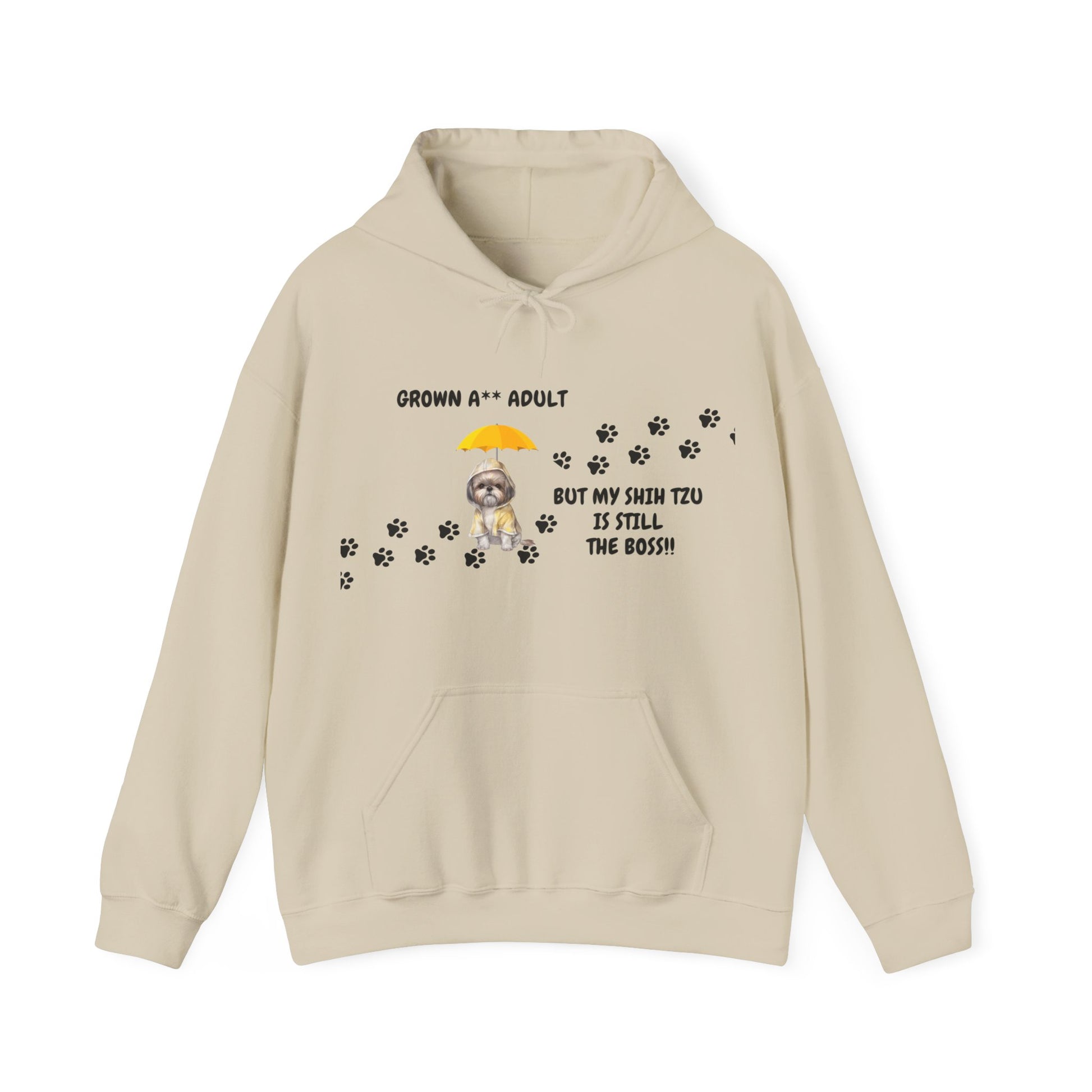 Grown A** Adult Shih Tzu Boss Hooded Sweatshirt - Printed on Front