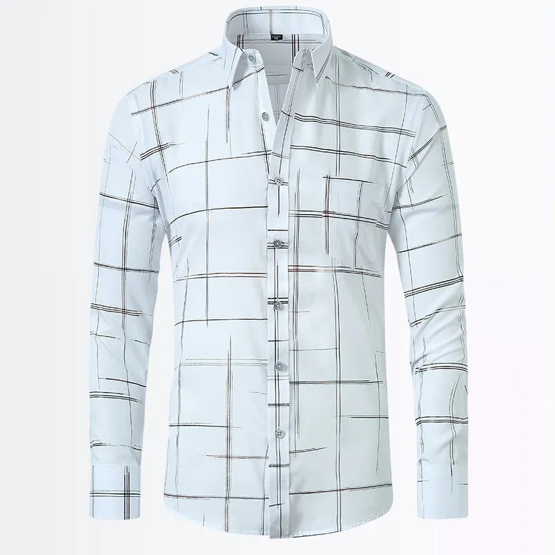 Men's Geometric Pattern Long Sleeve Button-Down Shirt
