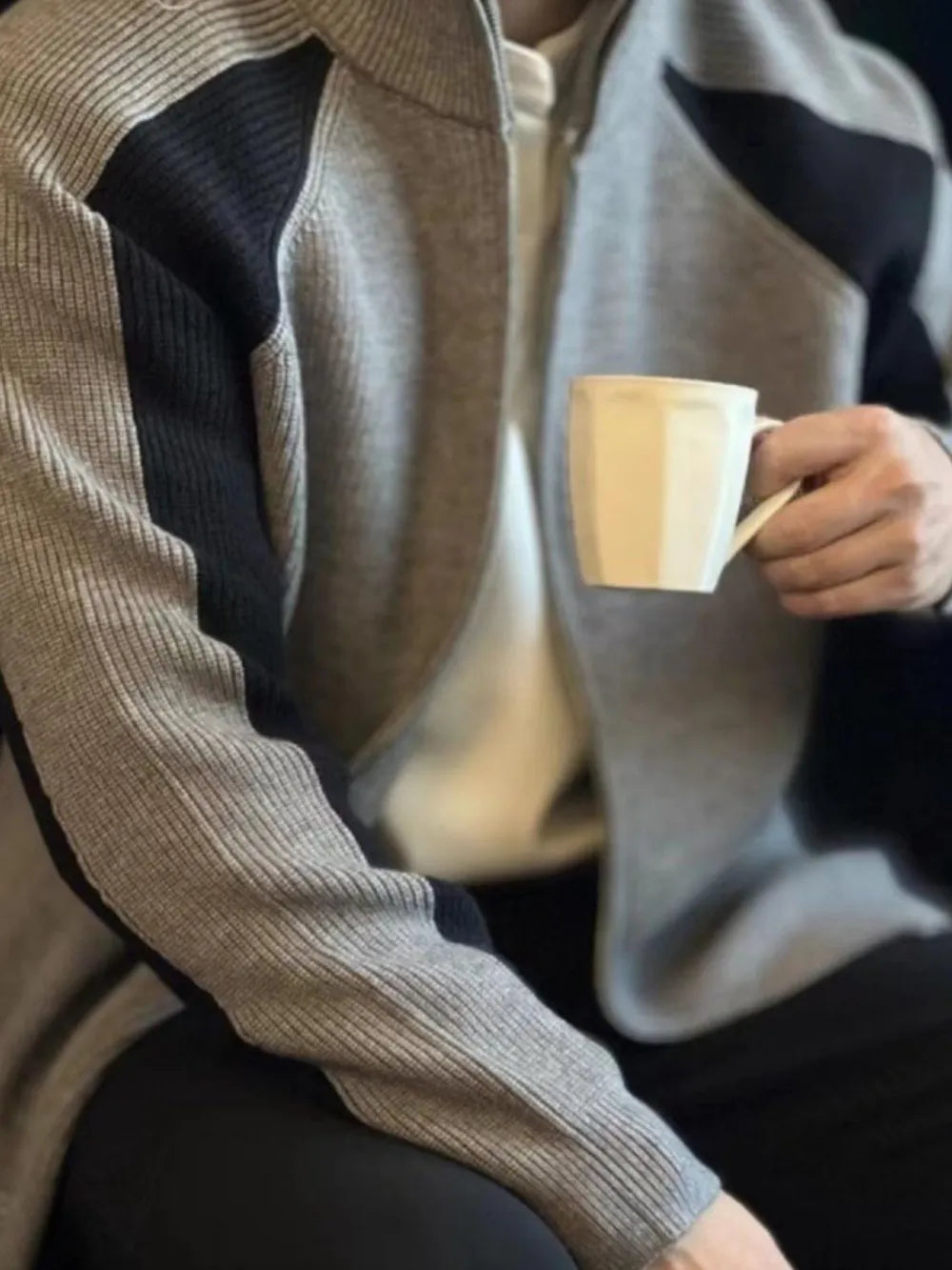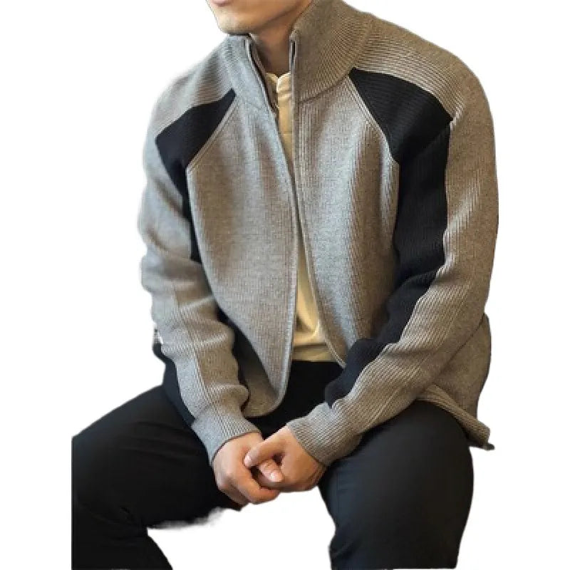 Men's Color Block Ribbed Knit Zip-Up Cardigan