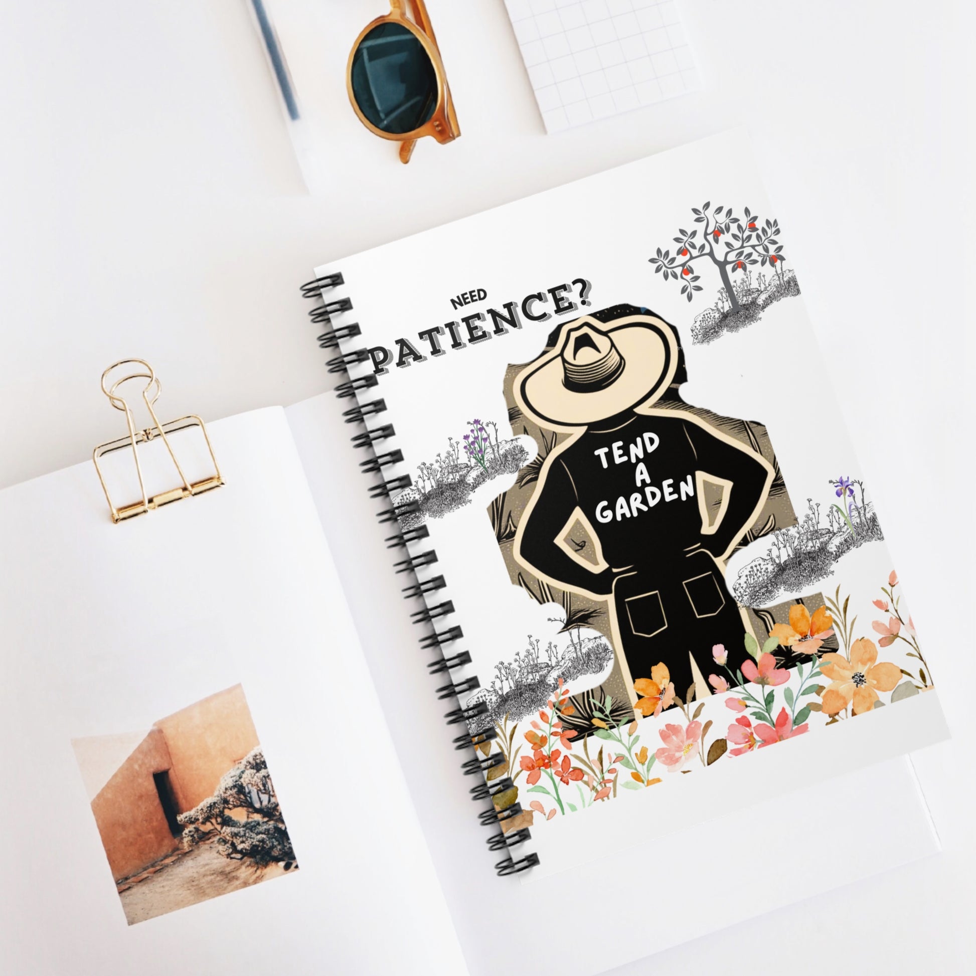 Need Patience? Tend A Garden Spiral Notebook, Gardeners Notebook, Nature Lover Journal, Floral Planner, Gardening Diary, Plant Lover Gift