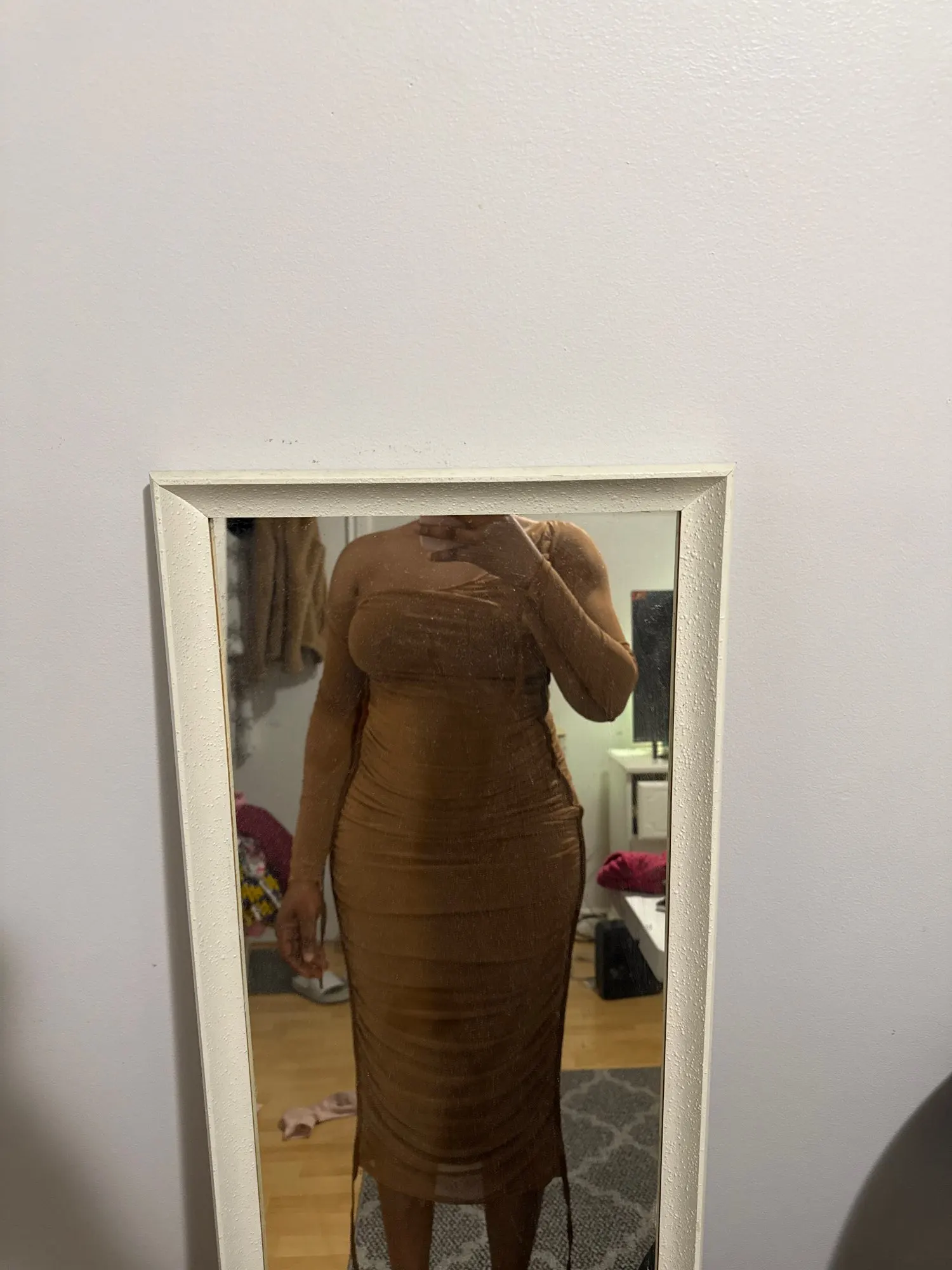 The dress is beautiful, good quality, soft mesh with lining, color as in the photo, fits true to size.